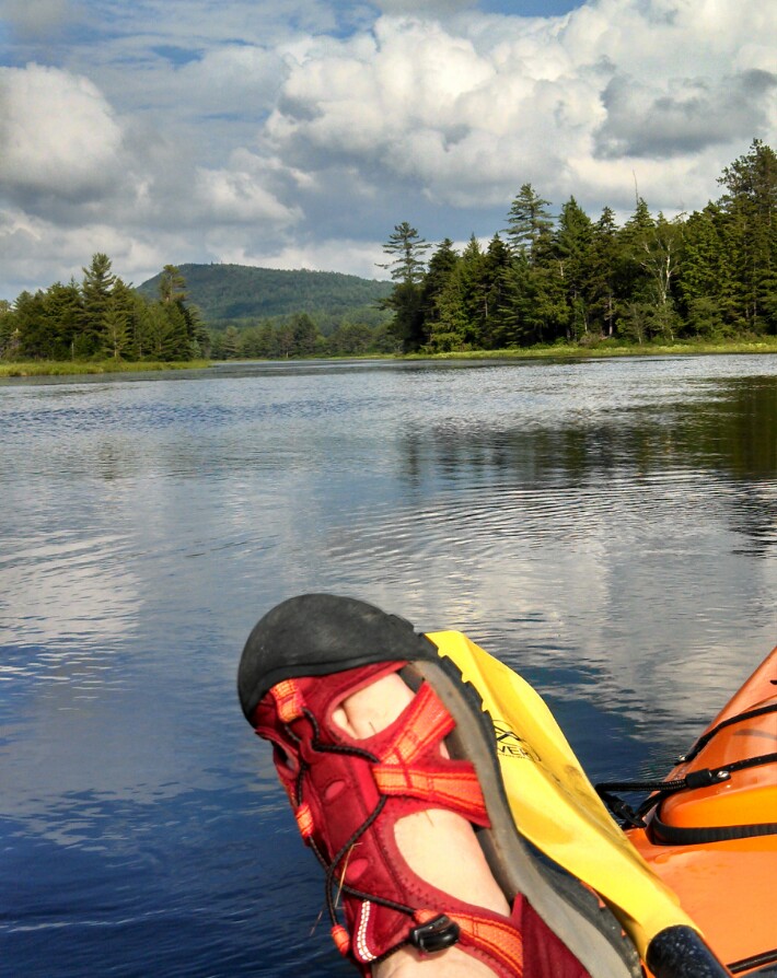 And this little frog was happily perched on a lily pad on a pond near Little Tupper Lake…