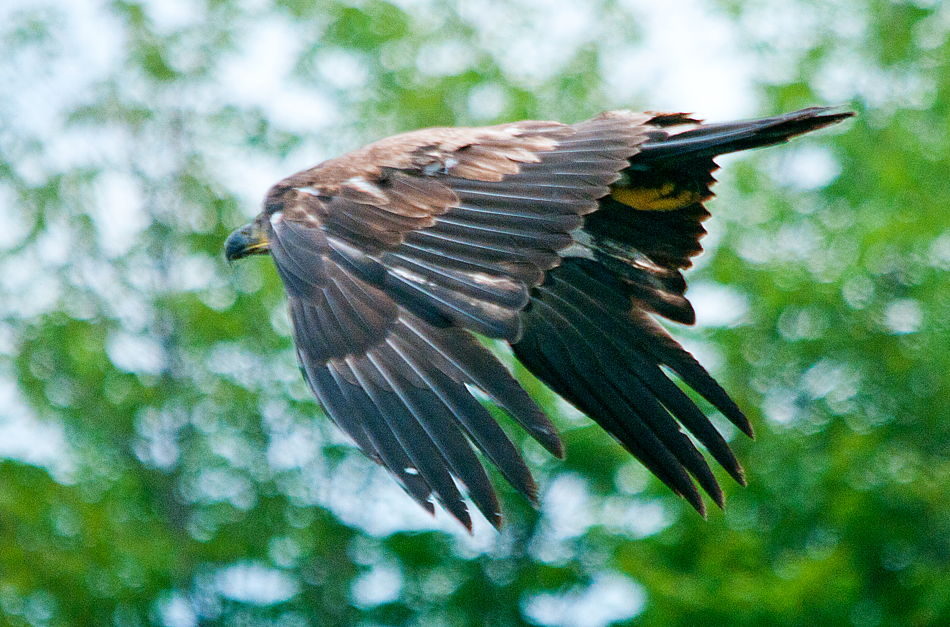 Finishing lunch, the young eagle (eagles don’t grow their classic white heads and black feathers until they are 3 or 4 years old) spread its wings and flew off to look for dessert….