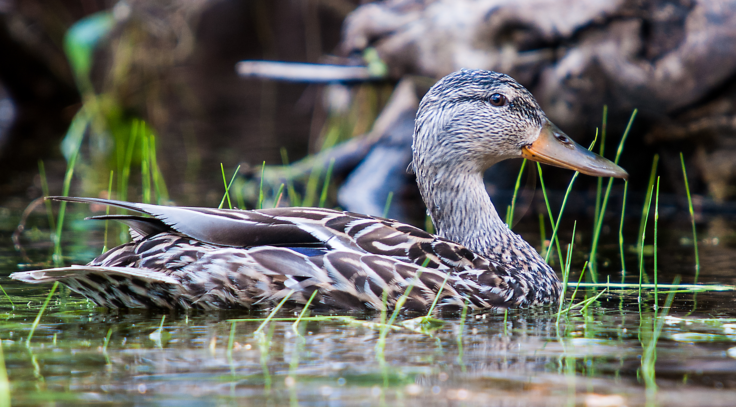 This mallard couple just kept moving along. The male mallards are very familiar iconic ducks with their big iridescent green heads.