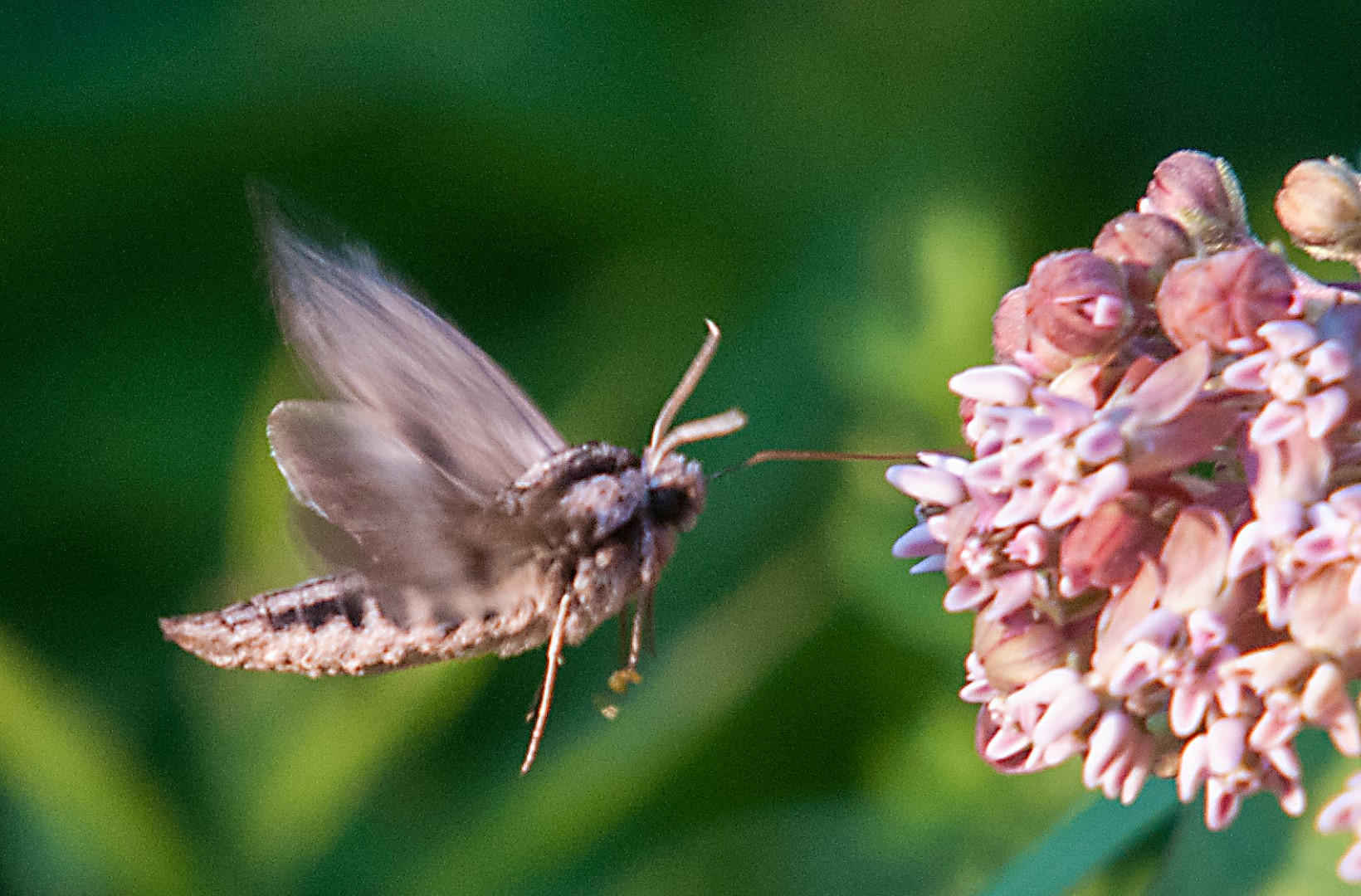 What’s that strange looking creature? Another example of a hummoth, sort of a cross between a hummingbird and a moth.