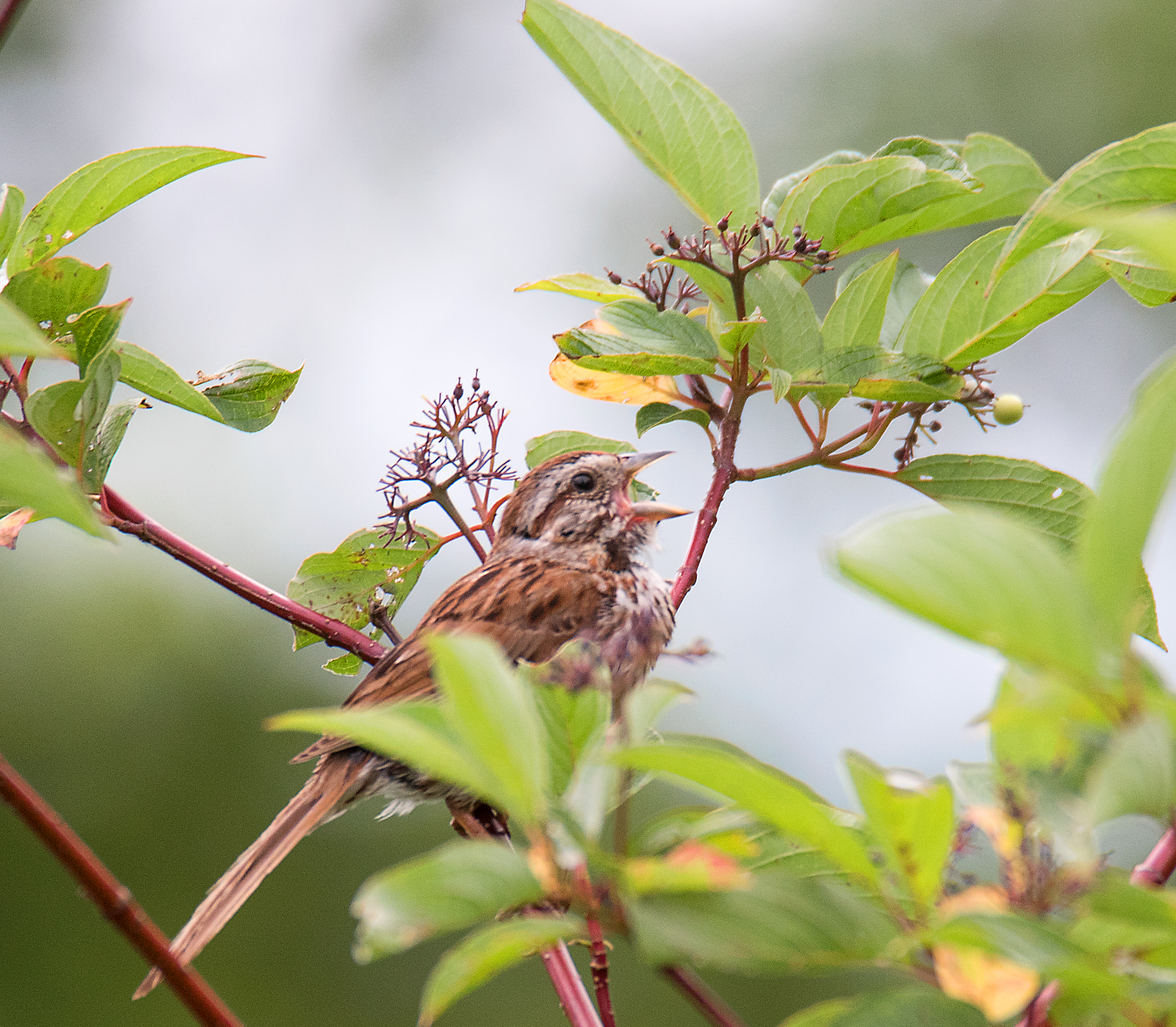 This sparrow was singing away in the brush: