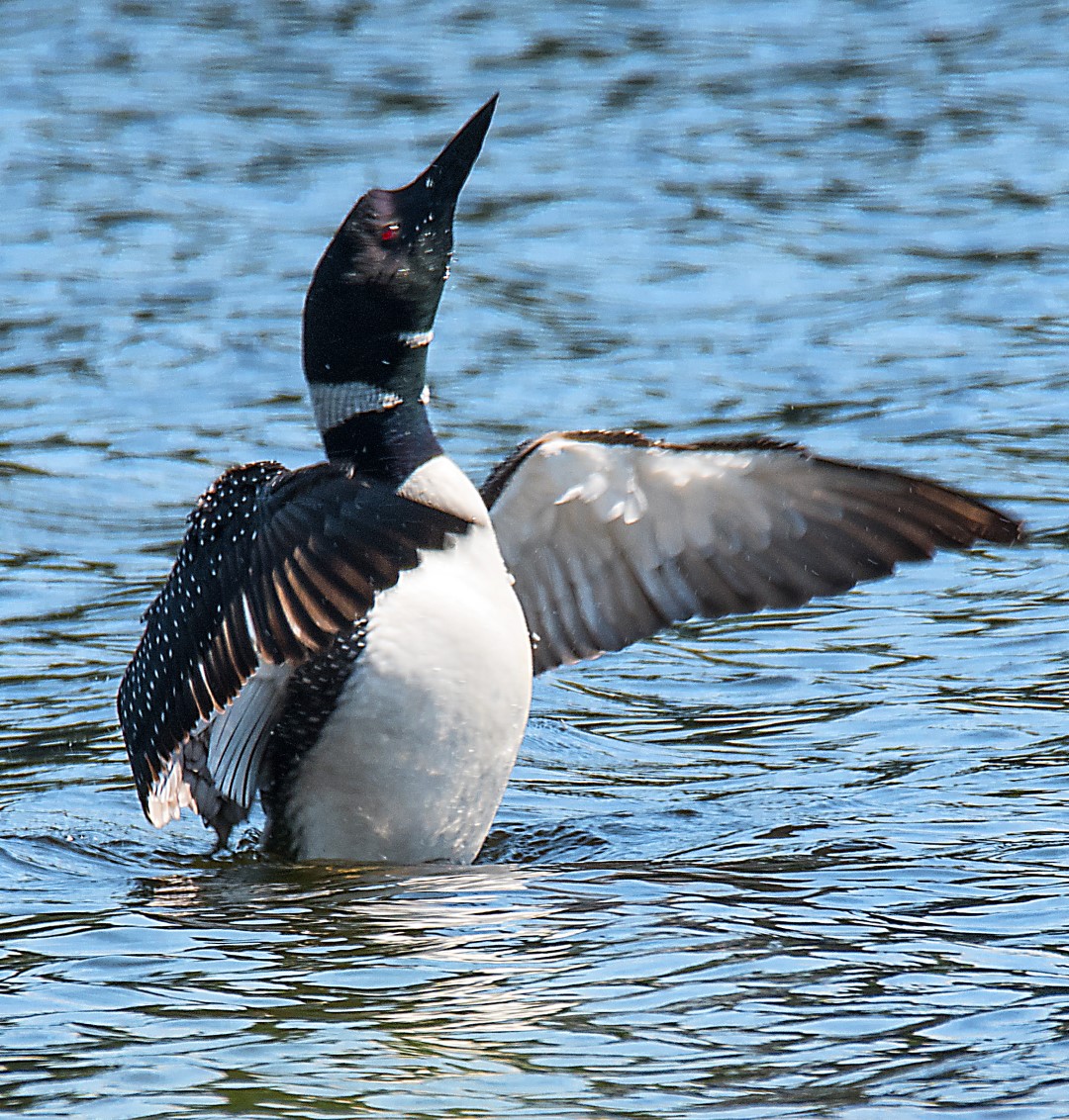 This loon mom is keeping a close watch on her chicks including feeding them: