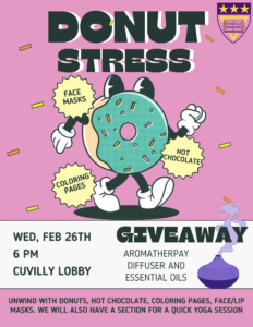 Unwind with Donuts, Hot Chocolate, Coloring Pages, Face/Lip Masks, and a space for a quick yoga session! We will also be doing a giveaway! Join us!