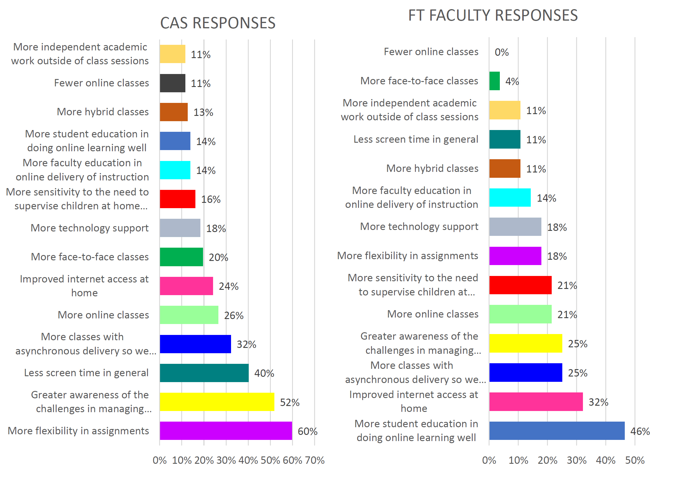 - 60% of students want more flexibility in assignments while only 18% of faculty chose that answer;