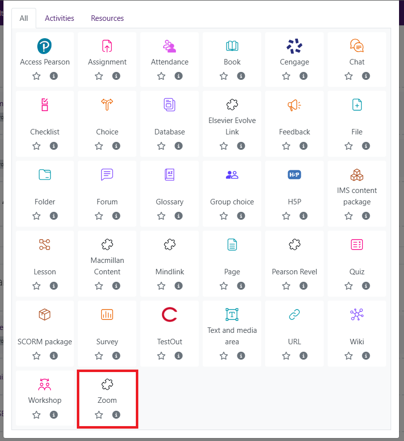 - Back at your course homepage, click on the Zoom activity you just created from the previous systems.