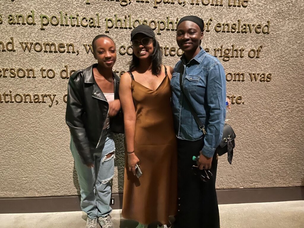 Maria, Saron, Margot, standing together at the African American Museum of History and Culture 7/25/25 (photo by Sr. Ann Howard)