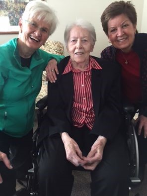 Love this photo of our alumnae Susan Tew ’62 and Louise Hallahan Stakelin ’76 visiting Sr. Margaret Claydon!