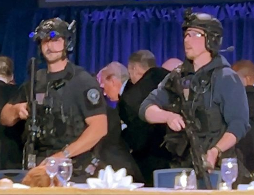 (photo credit: screenshot of President Trump being rushed from the Hilton Ballroom)