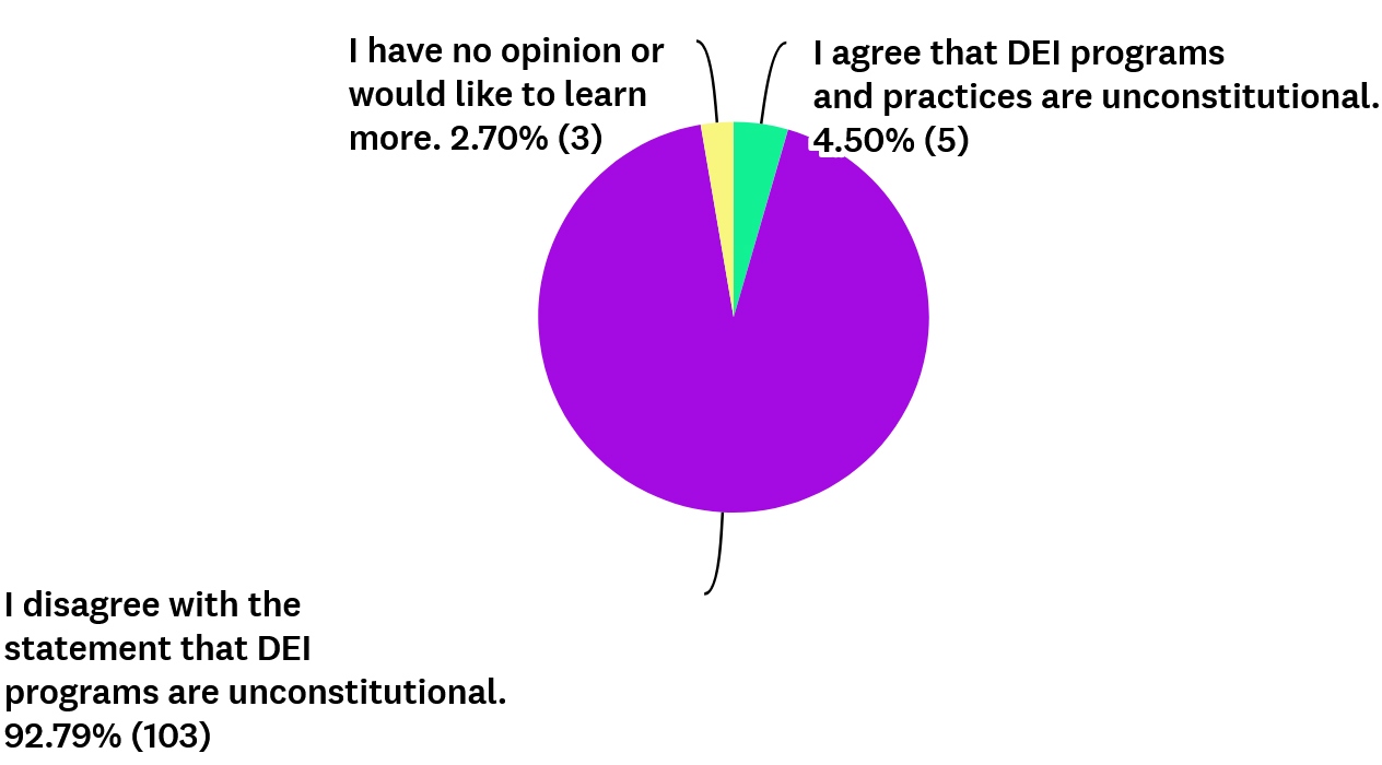 An overwhelming proportion of the Trinity community disagreed with the idea that diversity, equity and inclusion programs are somehow unconstitutional. Here are respondent comments elaborating on the answers: