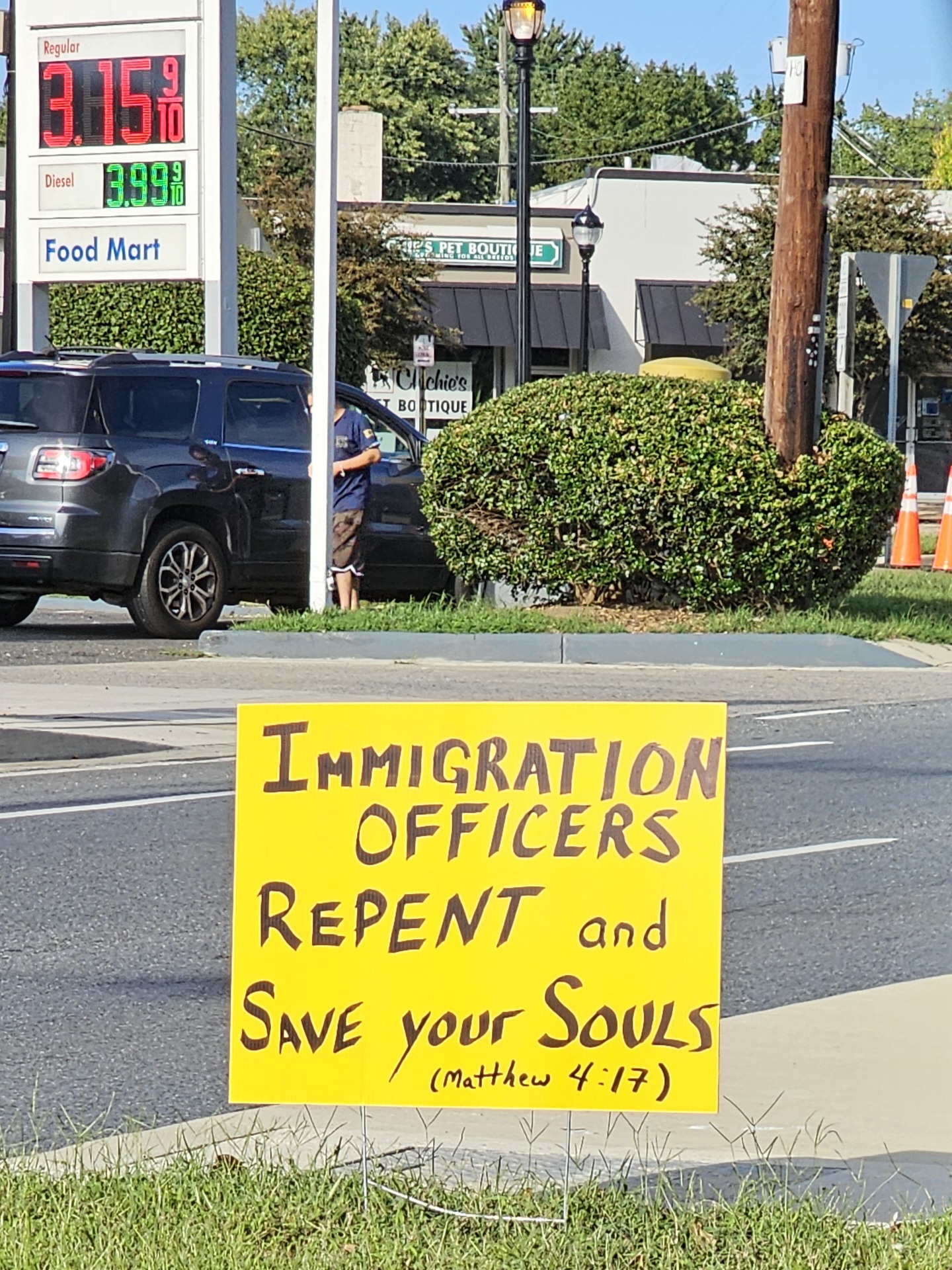 Homeland Security later said that the man on the ground was a “dangerous criminal” who was in the country illegally. Perhaps he was, but the brutality evident in the video was unjustified. The bystander who made the video said he and others felt that the ICE officer with the gun really might shoot them. Later on there were protests, signs planted on the grassy median on Queens Chapel, and a neighborhood ruptured in ways that will take a long time to heal.
