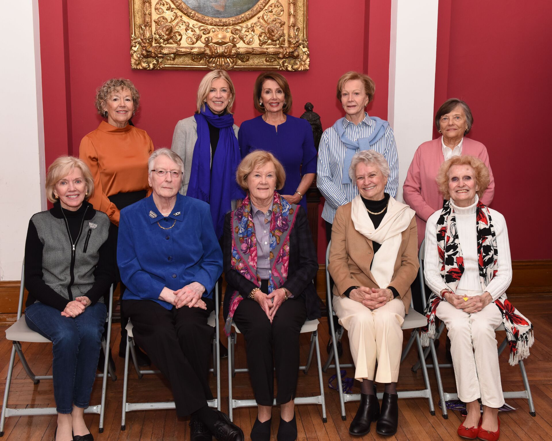 Other notable Trinity alumnae were able to join us for the Town Hall including former Congresswoman Barbara Bailey Kennelly ’58, now a Distinguished Professor of Political Science at Trinity; and Kathleen Sebelius ’70, former Secretary of Health and Human Services and former Governor of Kansas. See Secretary Sebelius on left, below, with Peggy O’Brien of the Class of ’69, and Trinity’s Board of Trustees Chair Sister Patricia O’Brien. Many members of the Board of Trustees, below, were also happy to salute Speaker Pelosi on this grand day.