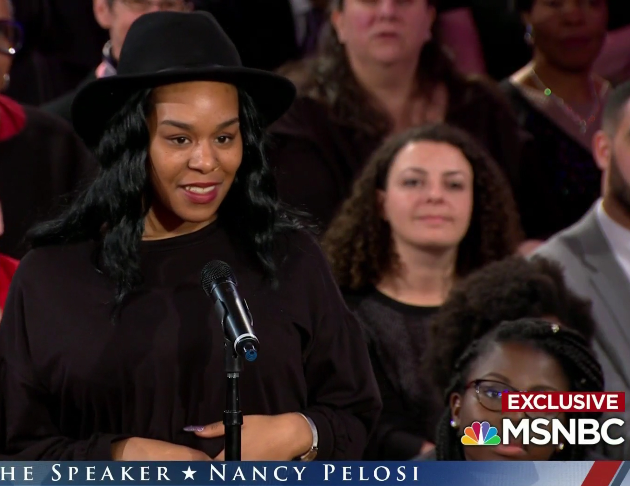 Shelley Ward (below), a student in the Journalism and Media Studies Program in SPS, asked Speaker Pelosi if she supported the Black Lives Matter movement.