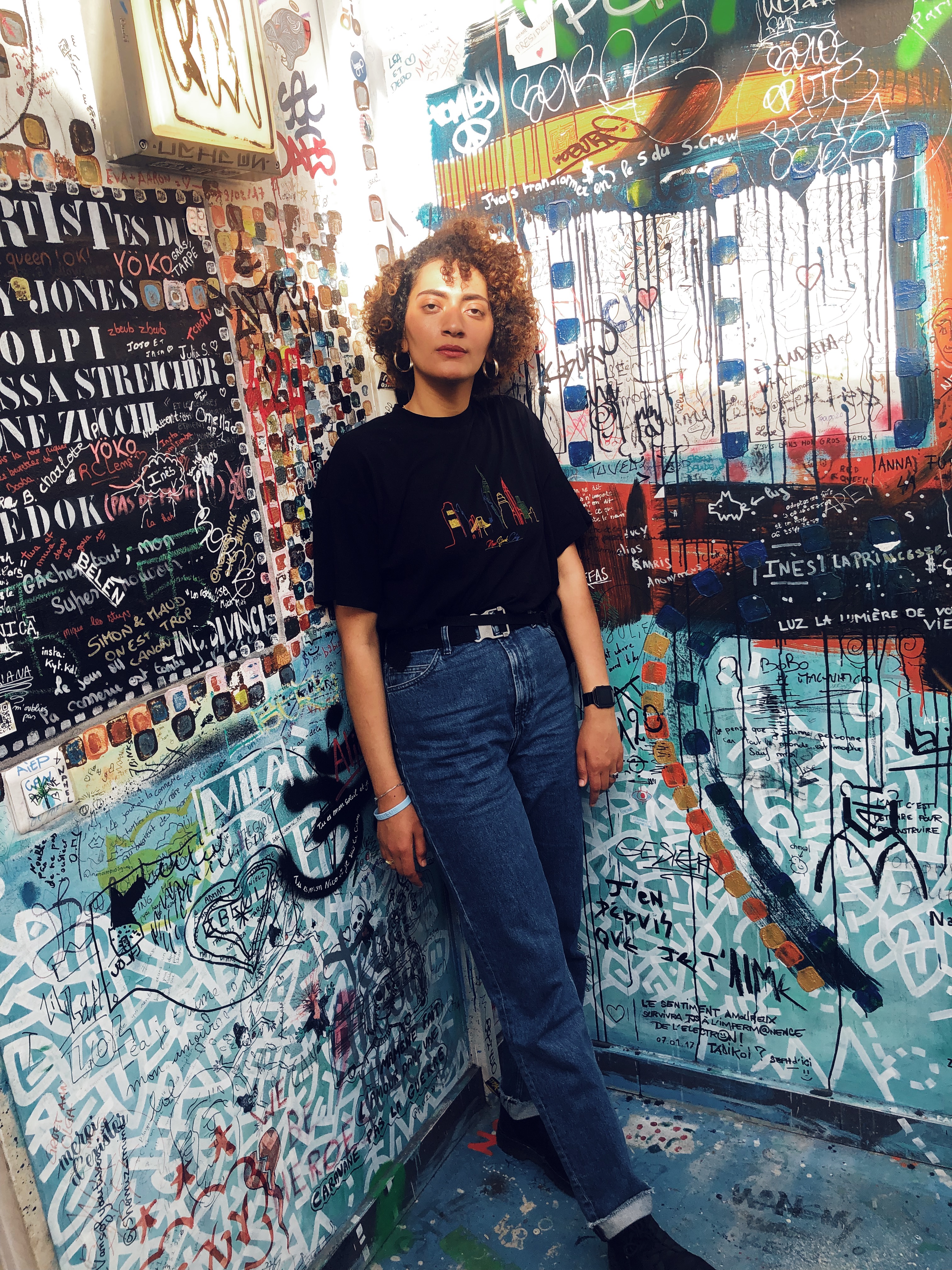 Youssra at the Louvre“The Barron family made me feel at  home, which helped me feel less homesick. I happened to be in Paris on a Muslim holiday, Eid. When I shared my disappointment in not celebrating my favorite holiday with my family, Phillip Barron my host dad, decided to take me to a Jewish neighborhood named Le Marias, where a famous Falafel place, L’AS Du Fallafel, served the best Falafel and Shawarma wraps in town. Inside of the restaurant, I noticed that strangers were sitting close to one another and conversing while eating their meals. The scene at the restaurant caused me to have a flashback to me being a child in Egypt and watching strangers enjoy each other’s company over good food. This memory warmed my heart and made me feel better about being away from my family, and I was grateful to Phillip for his thoughtfulness. Phillip, a retired sociology professor, became my tour guide and accompanied me to see the Eiffel Tower, the Statue of Liberty Paris, the Jardin Des Plantes and Paris-10th Arr, an area with famous street art. Having a Parisian show me the city enhanced  my experience.