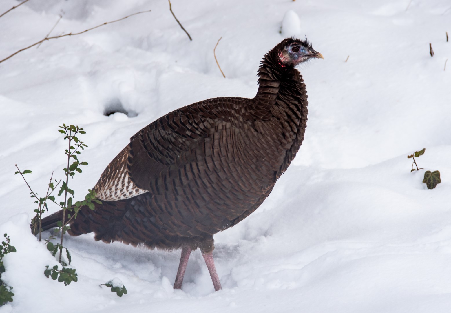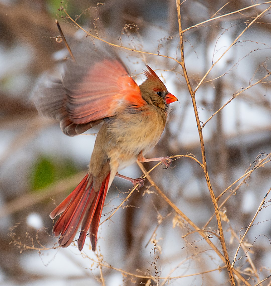 And the snow brought out the birds…..including, can you believe it? — a wild turkey on Cuvilly parking lot!! And a festival of cardinals and sparrows….