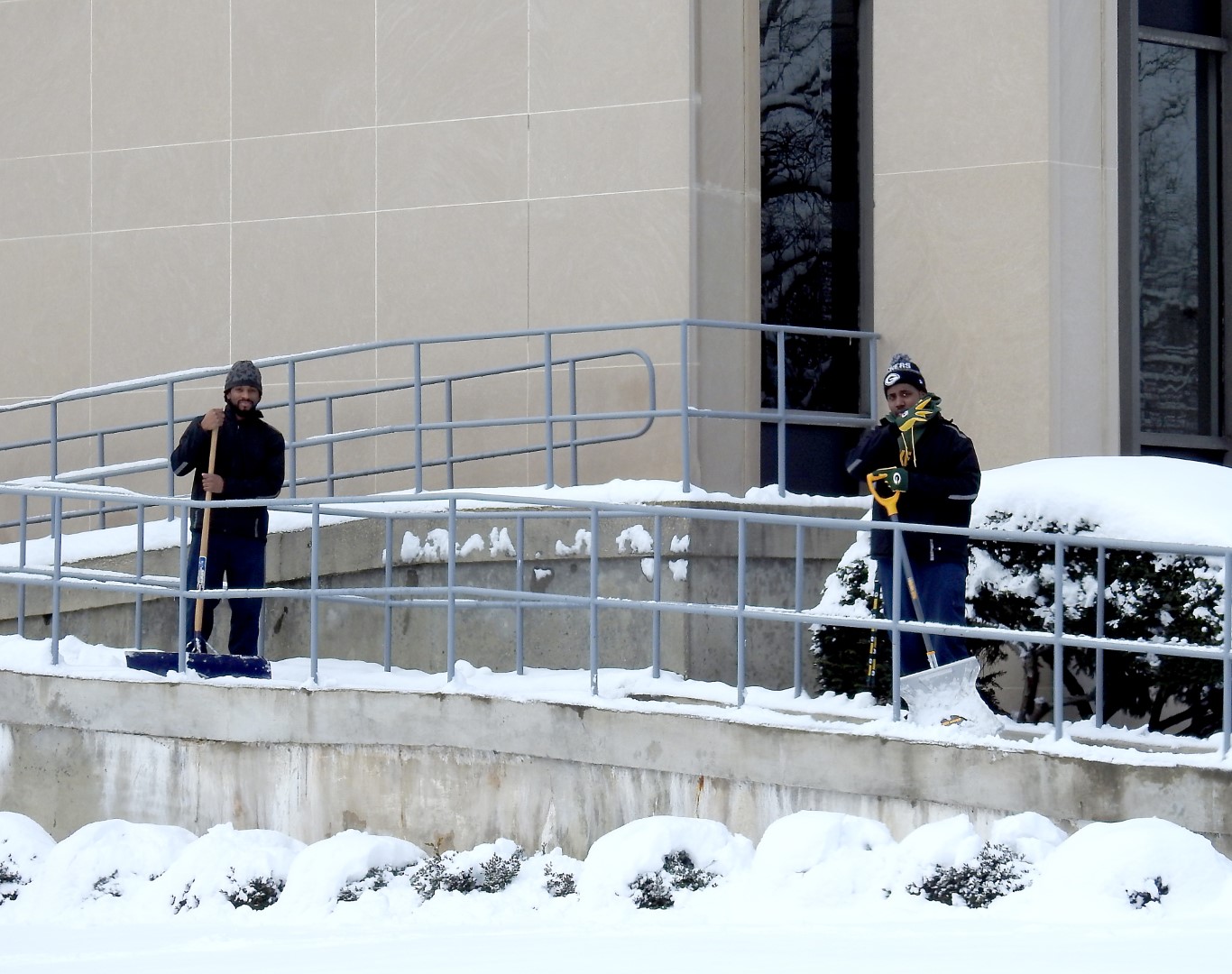 The snow this week made the campus look very beautiful, some photos below. But the most important message is that we have wonderful members of our Aramark Facilities Team who worked tirelessly for three days (!!) to make sure all of the roads, walkways, parking lots, steps, etc. were clear of snow and ice. Please thank them when you see them. Also please thank our Allied Universal Security team who worked through the storm, and also our Metz Food Service team who came in despite the storm to make sure our resident students were well fed! Here are some photos of our great Facilities Team clearing snow:
